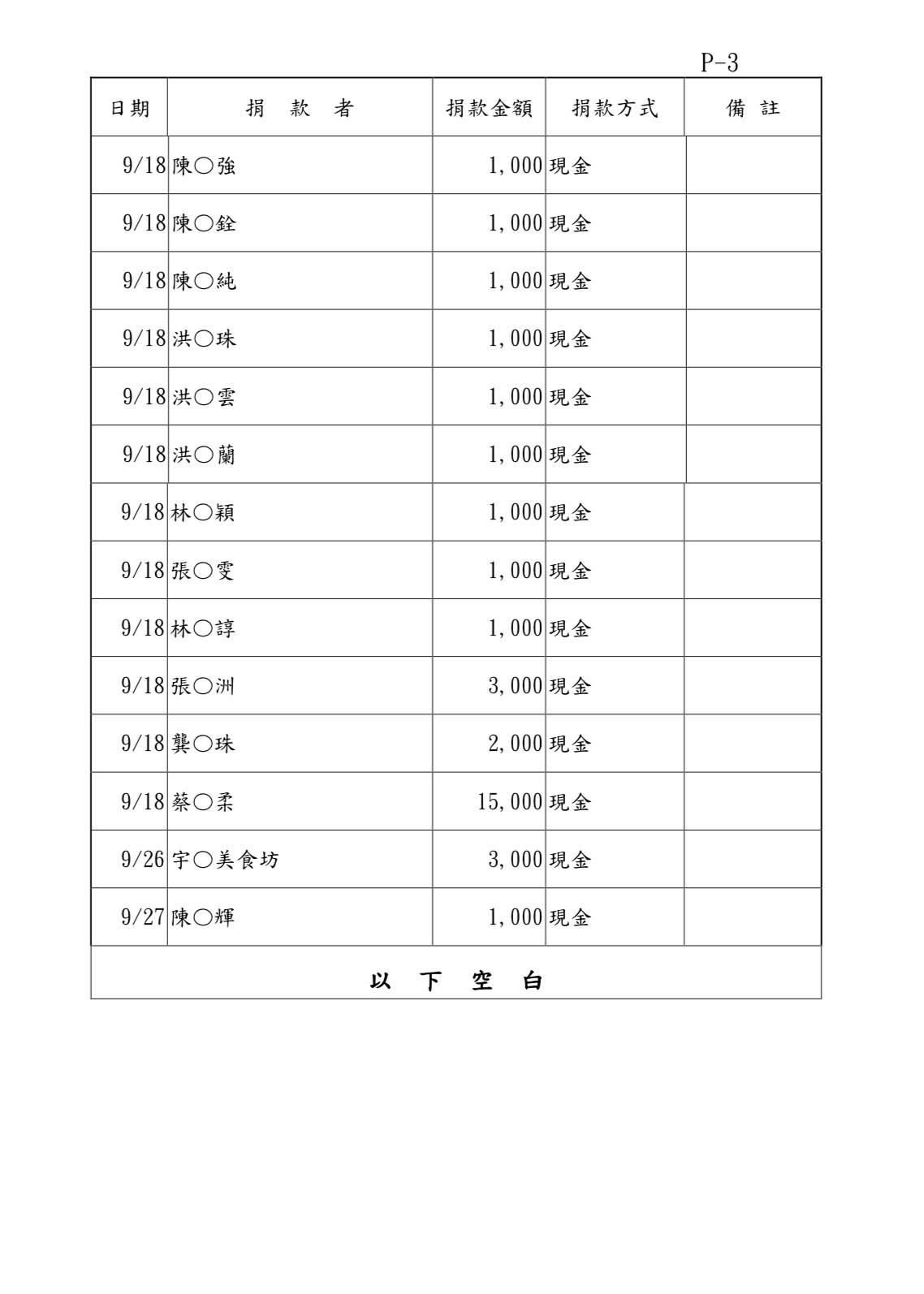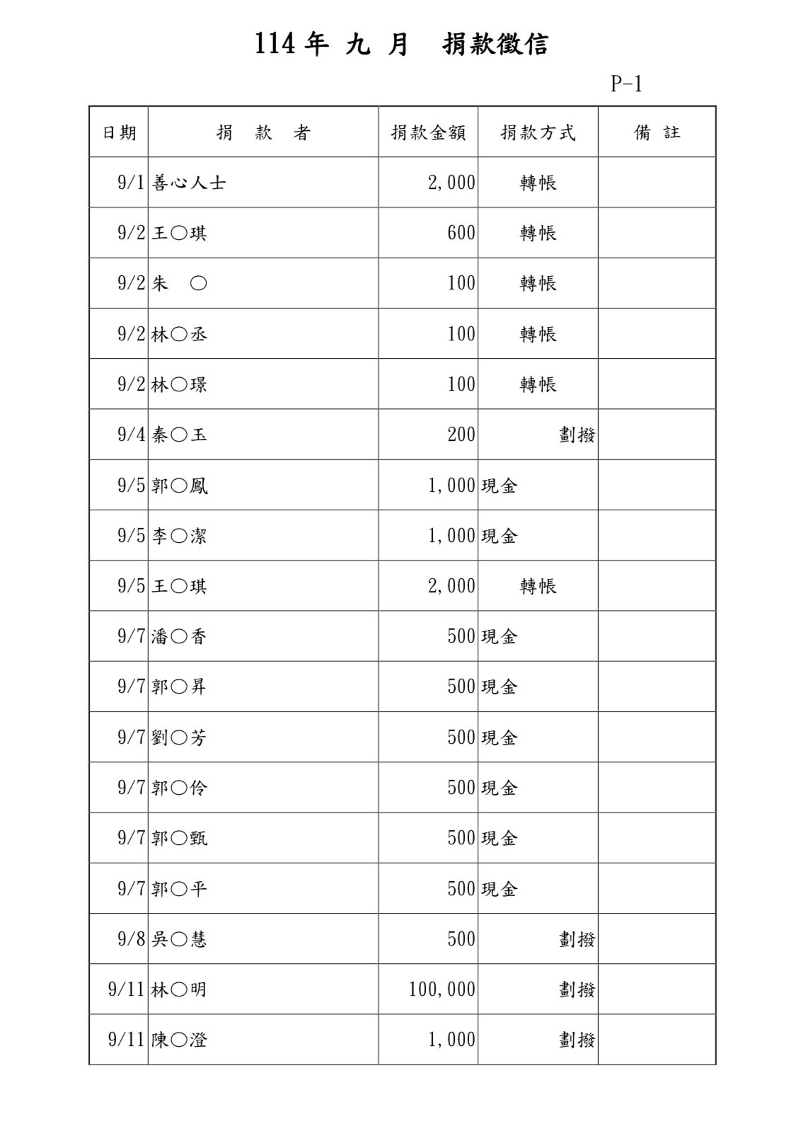 ◼︎ 113年09月 捐款 ![]() ![]() |